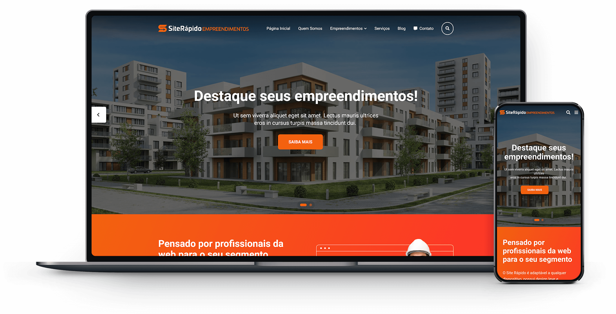 Modelo de site já estruturado indicado para empresas do ramo de construção e engenharia civil como construtoras, escritórios de arquitetura, empreiteiras, corretores e imobiliárias.