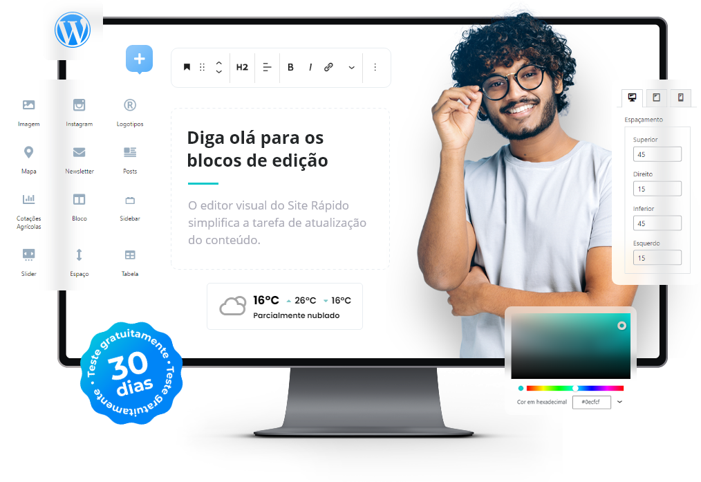 Sim, o Site Rápido é um tema do WordPress já instalado em uma infraestrutura dedicada e fechada. Isso significa que você poderá adaptar totalmente a estrutura e o design do seu site, desde que respeitando as possibilidades de personalização disponíveis no painel administrativo do site.