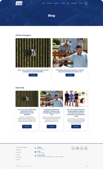 A Inel Inteligência Eletrônica desenvolve tecnologias para tornar a produção do campo mais fácil, eficiente e lucrativa. Desde 2013 desenvolvendo software e desde 2021 comercializando também hardware, a Inel apresenta ao mercado de indústrias de máquinas e implementos agrícolas produtos inovadores, desenvolvidos conforme a necessidade de cada cliente.
